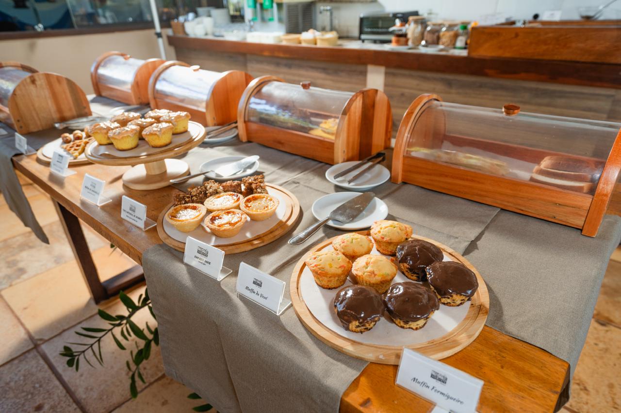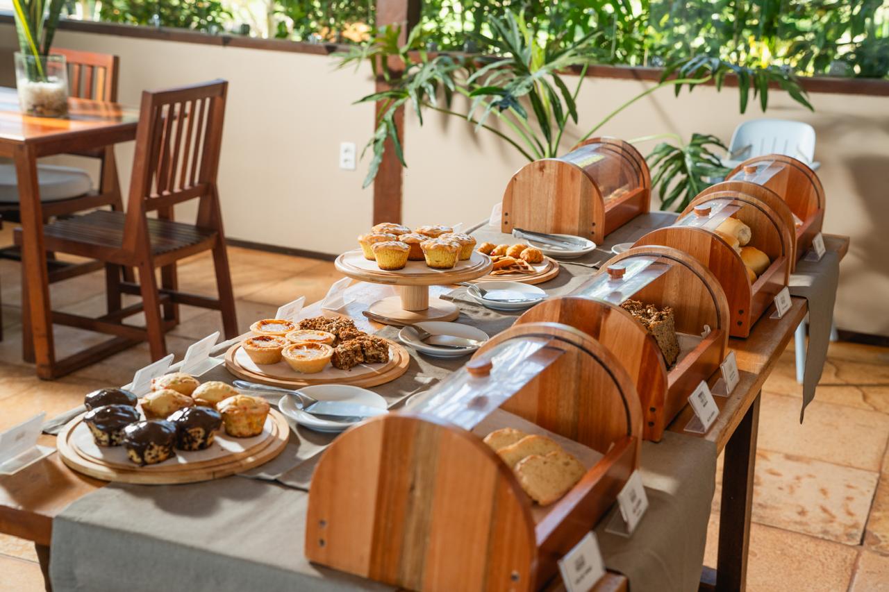 Guloseimas como pães artesanais, croissants, pães de queijo, sonhos, bolos, tortas, geleias, sucos naturais de frutas, são feitas na própria pousada, além de tapiocas e omeletes feitos na hora de acordo com a preferência do hóspede.